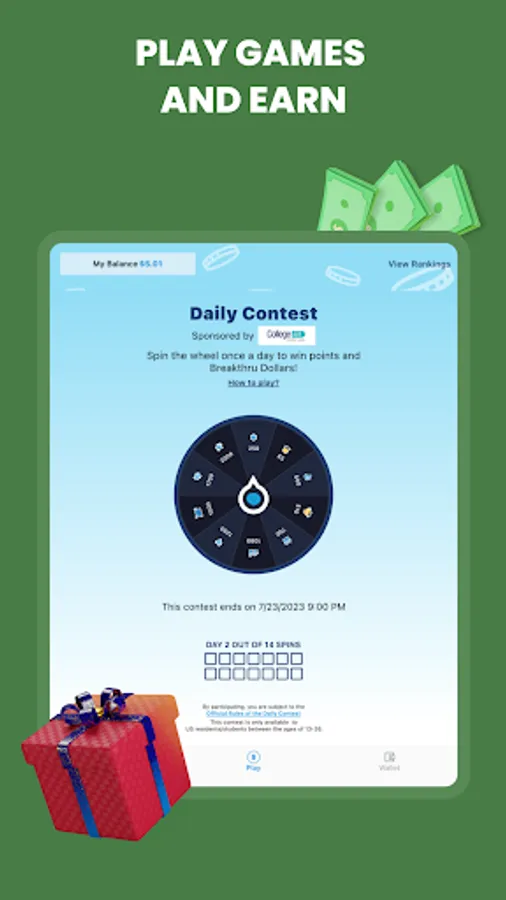 - Spin our Daily Contest Wheel for a chance to win even more Breakthru Dollars.