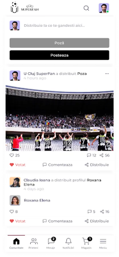 U Cluj SuperFan combines the dynamic experience of a social network with the functionalities of a MarketPlace from which users can quickly purchase the desired products. At this moment, several thousand products are listed in the platform. And the strategy is to expand the store portfolio to reach a volume of hundreds of thousands of products.