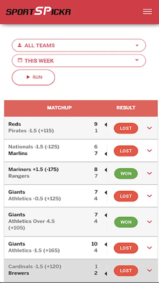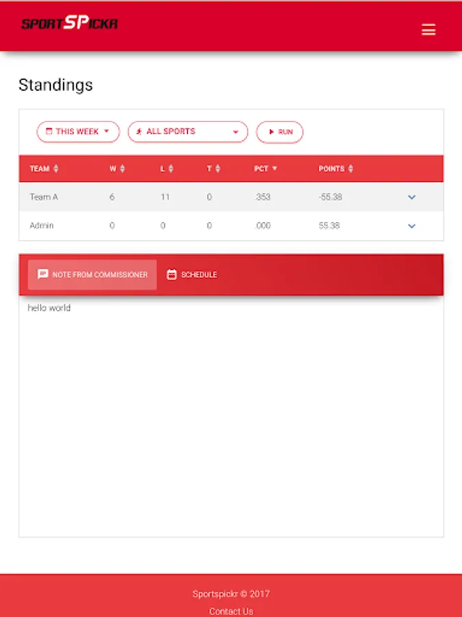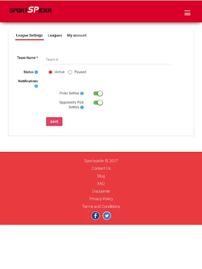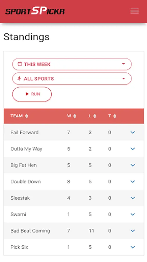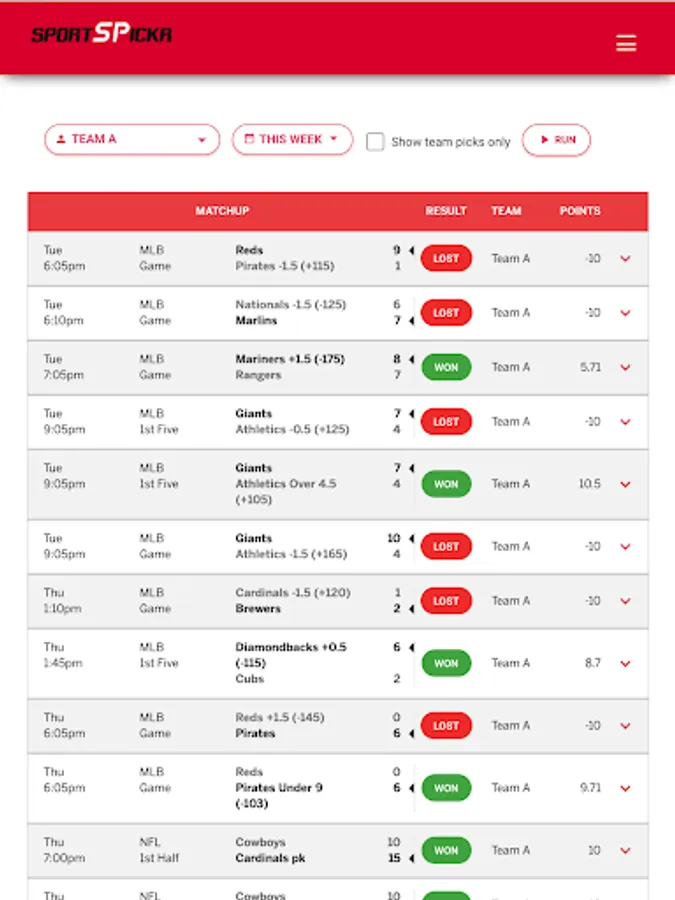 - At end of week, see who has most points for weekly winner or have a winner over a set period of time. Prizes and winnings are set and distributed by league and outside of Sportspickr.