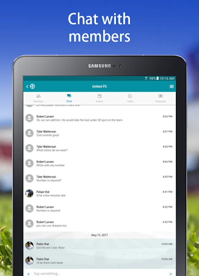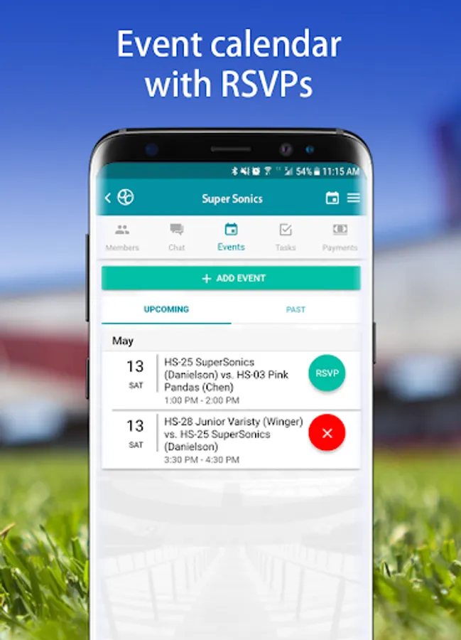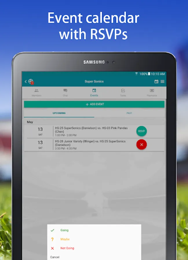 QuickClub offers a simple interface for club, team and group management. Easily communicate using club chat. Event management with RSVP lets you know who will be there and who won't.