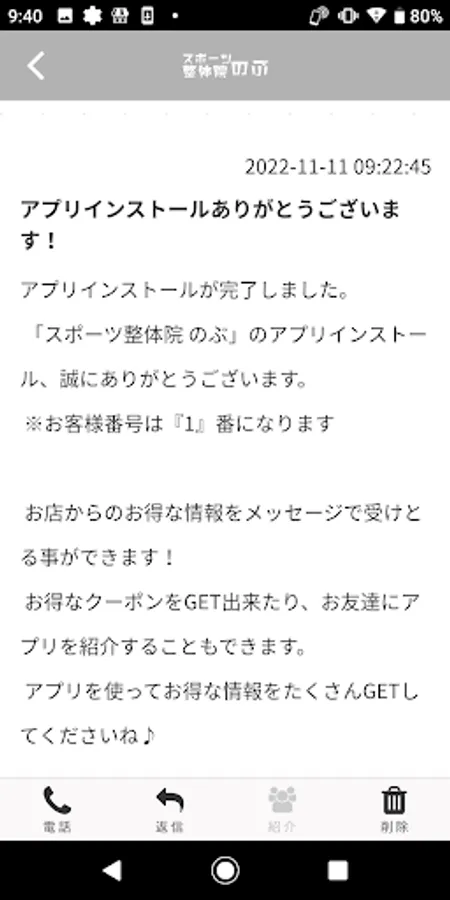 You can introduce the Manipulative Clinic Nobu's app to your friends through SNS.