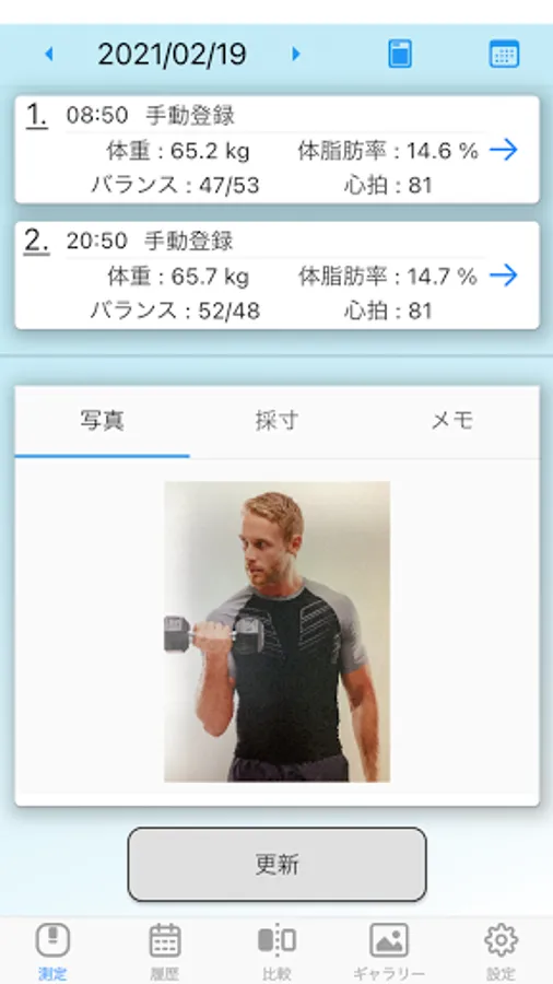 Furthermore, not only the data measured by weight, but also body measurement information, photos, memos, etc. can be recorded for each measurement day.