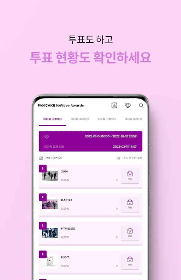 You can participate in the monthly global K-Wave chart voting. Vote for your favorite star and participate in events.