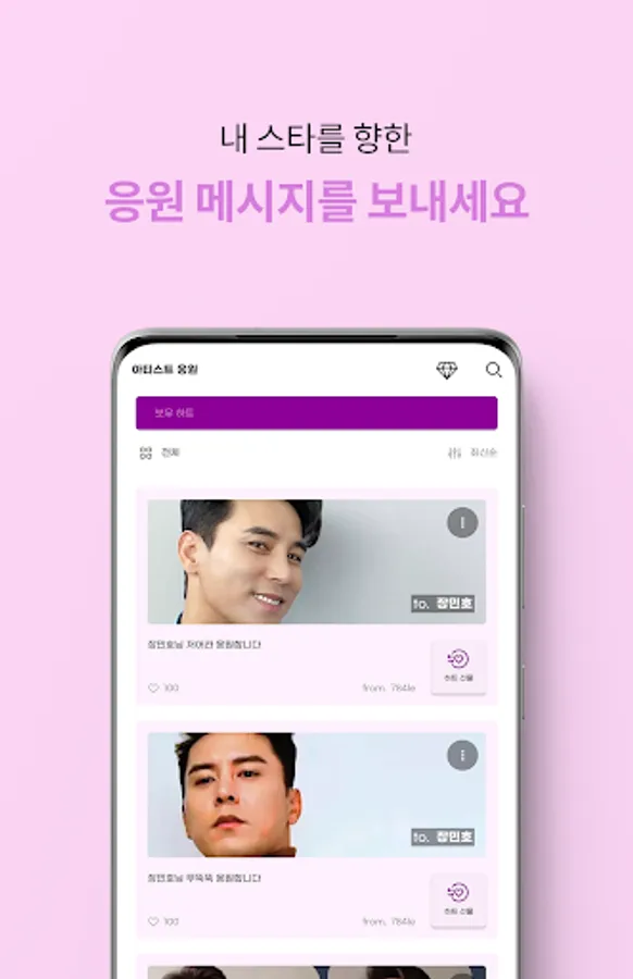 You can post your favorite star's image and cheering message, receive hearts as a gift, and be exposed on the main billboard.