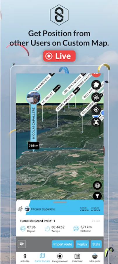 Secure the practice of your Outdoor Activities by broadcasting your Track in Real Time, without latency, without delay to other practitioners, or to people who need to follow you.