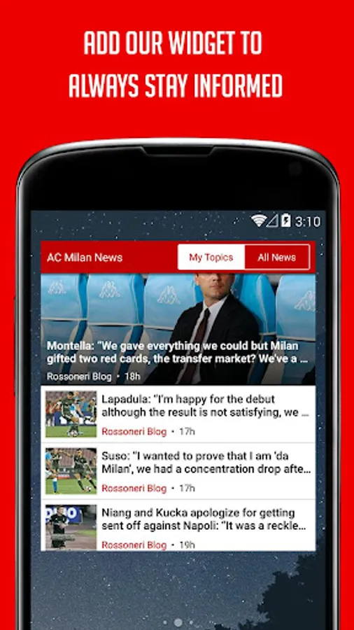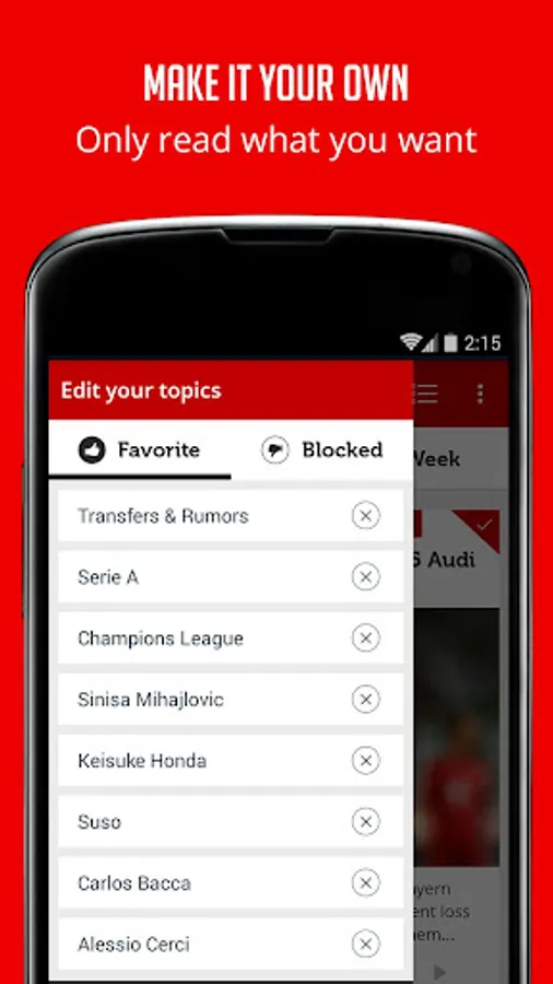 * Customized news feed - choose your favorite calcio topics or simply block topics you're not interested in