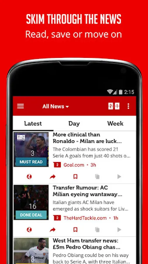 * A news summary covering stories about the club from all sources - up to date feed with no repeat stories - see all sources that covered any story with a simple tap