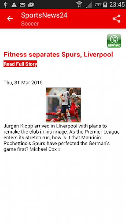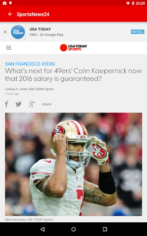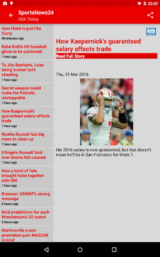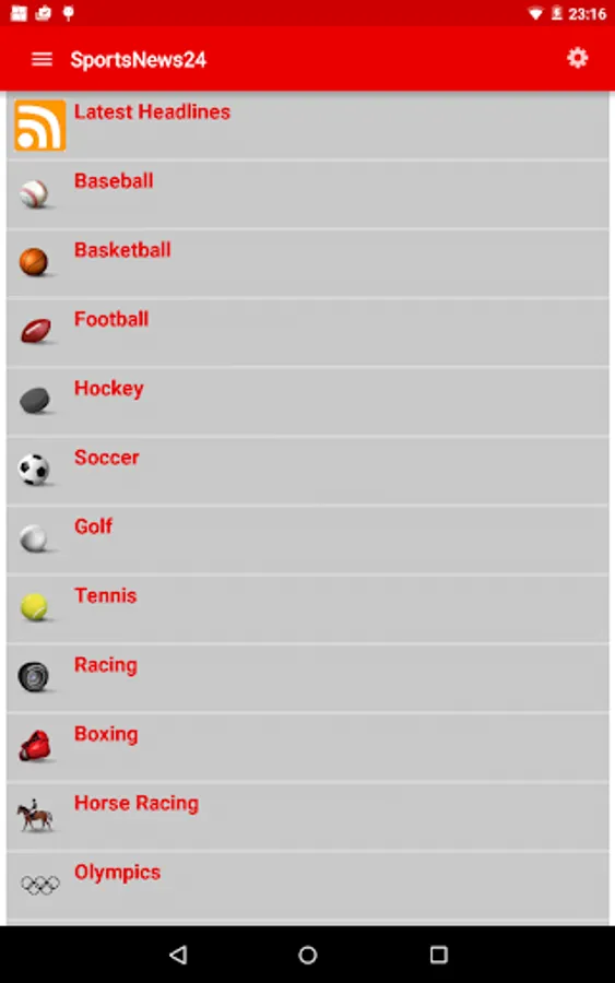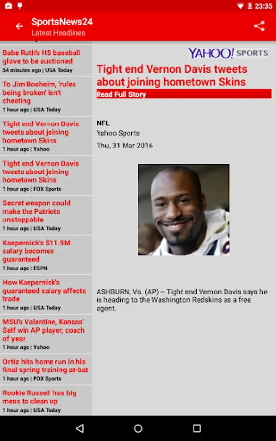 News feeds from a number of outlets including Yahoo, ESPN, USA Today, Fox Sports and CBS Sports.