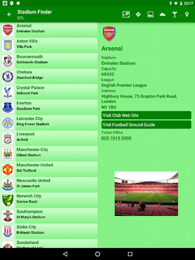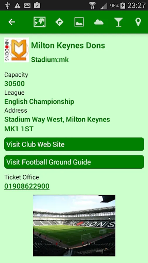 Stadium Finder contains details about the Stadium you are planning to visit and also gives directions from your current location.