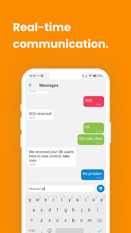 Real-time messaging between you and the event organizer is also available, including SOS, OK and RED FLAG alarms but also free text messages.