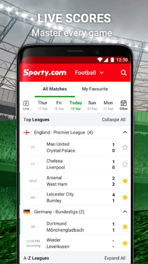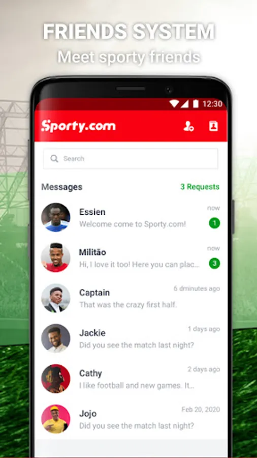 Sporty.com is the ultimate app for sports fans. It comes with the latest sports news, football live scores, sports odds on your favorite football matches and other sports. Furthermore, take advantage of Sporty.com's additional features, such as exclusive sports videos, chats and group chats with your friends as well as with Sporty's ambassadors like Kanu Nwankwo & Michael Essien, among other popular sports and football players, influencers and celebrities!