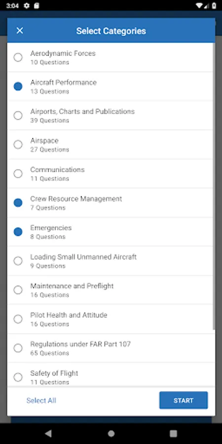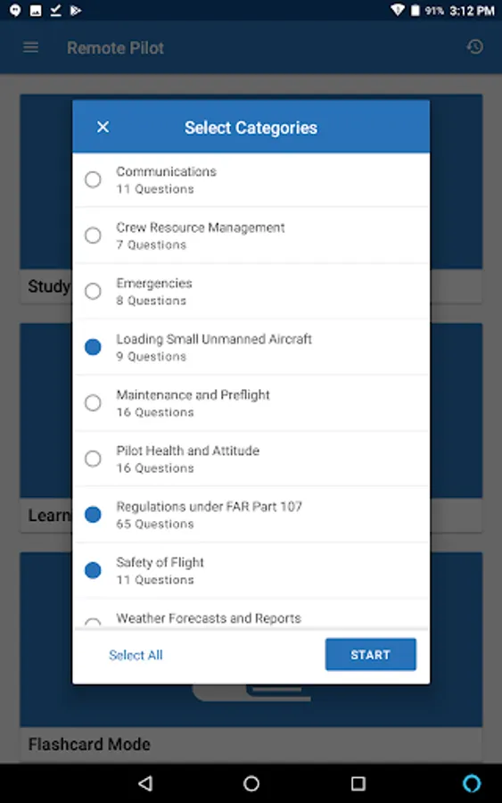 Learning Mode allows you to create custom review sessions by selecting exactly which categories you want to review. Each session randomly generates the question order, and provides instant feedback based on your answer selection. Each question also provides a detailed description as to why each answer is right. These explanations were developed by Sporty’s team of Master Instructor’s, based on their experience preparing for the Remote Pilot certificate.