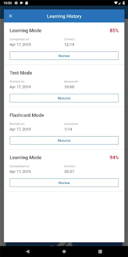Flashcard mode tests your knowledge by allowing you to only see the question without the answer choices. After answering the question mentally, you can then select to show the correct answer, and self-grade your progress along the way. This is a great feature that keeps you from being distracted by incorrect answers!