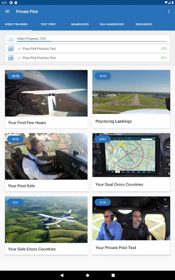 Sporty’s innovative Pilot Training app brings a variety of aviation training courses to one location, allowing you to access all your aviation content from your Android phone and tablet.