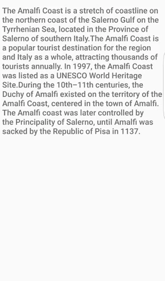 During the 10th–11th centuries, the Duchy of Amalfi existed on the territory of the Amalfi Coast, centered in the town of Amalfi. The Amalfi coast was later controlled by the Principality of Salerno, until Amalfi was sacked by the Republic of Pisa in 1137.[3]
