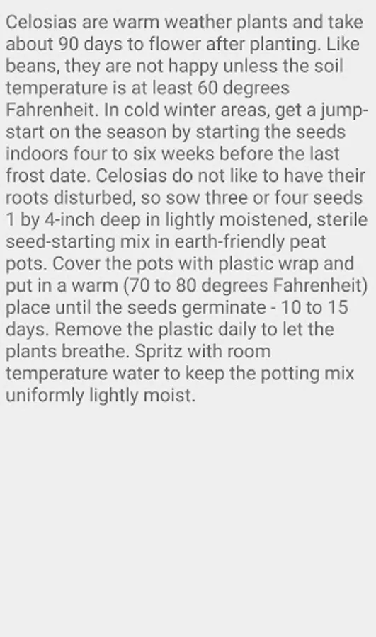 60 days from transplant, 80 days from direct seeding. Large, crested dark purple-red flower combs CULTURE Soil temperature: 75 - 80 degrees fahrenheit Germination lighting: Light required Germination days: 7 - 10 days Grow on temperature day: 65 - 70 degrees fahrenheit Grow on temperature night: 62 - 68 degrees fahrenh.
