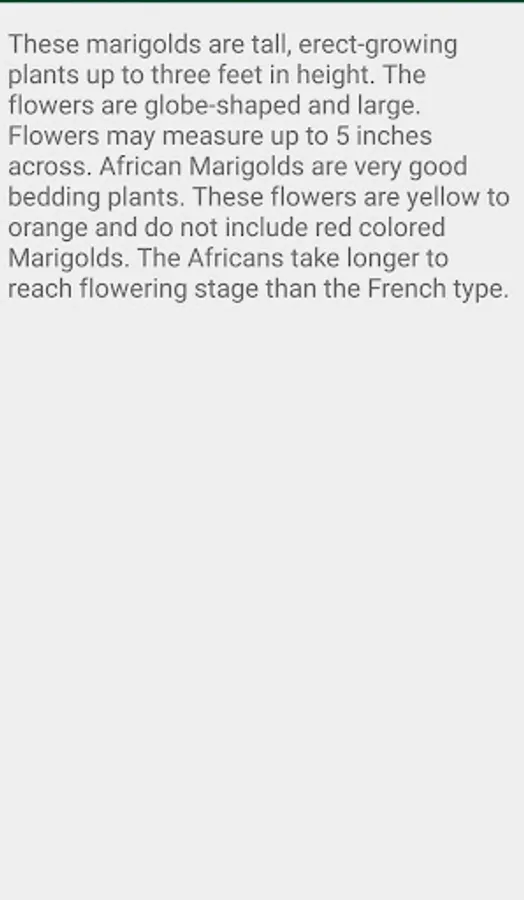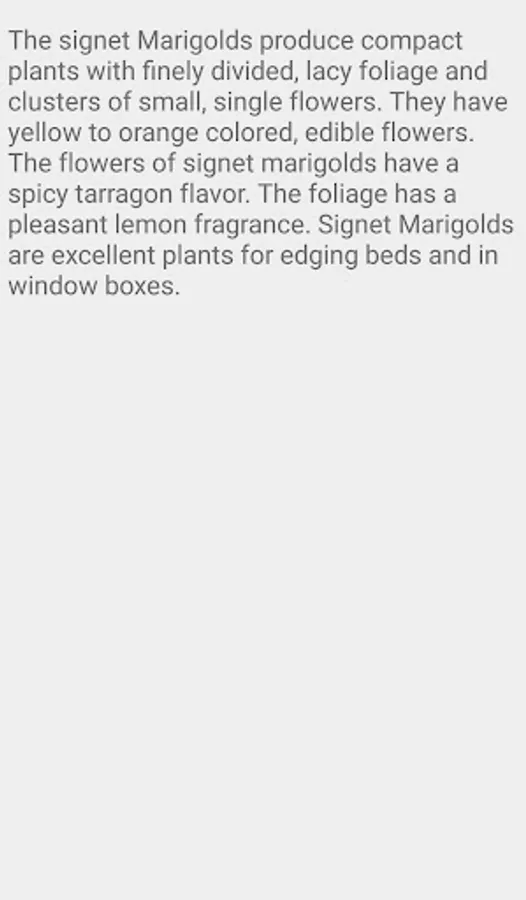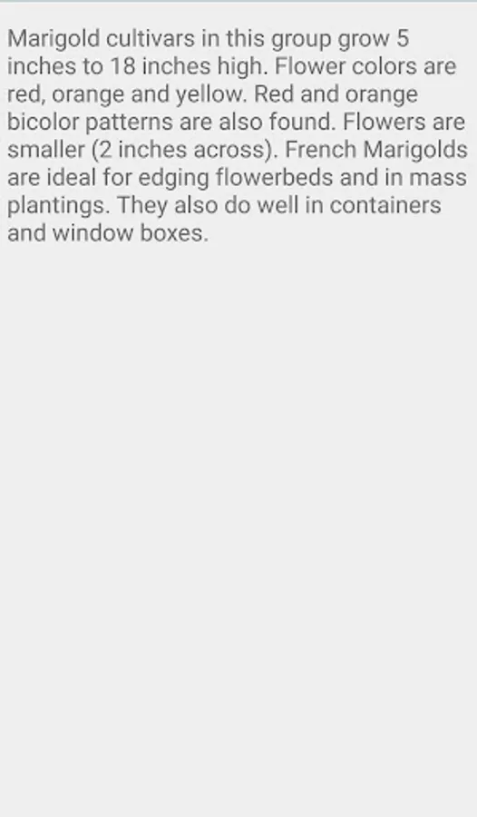 Marigold flowers are made up of multiple layers of overlapping petals with the petals getting smaller and more condensed towards the flowers center, similiar to that of a carnation. The blooms may be single or double colored and can be varying hues of yellow, orange, red and maroon.