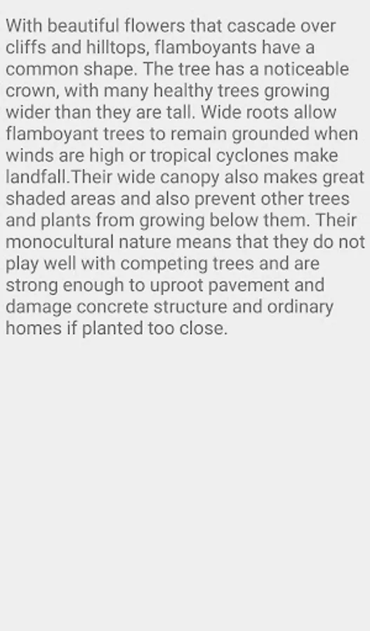 Delonix regia is a species of flowering plant in the bean family Fabaceae, subfamilyCaesalpinioideae. It is noted for its fern-like leaves and flamboyant display of flowers. Inmany tropical parts of the world it is grown as an ornamental tree and in English it isgiven the name royal poinciana or flamboyant. It is also one of several trees known as"flame tree".