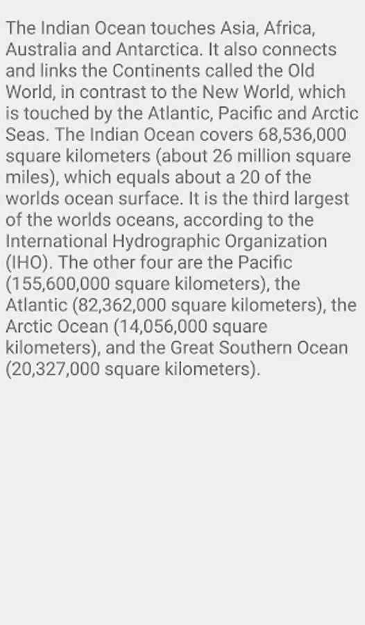 Called the Sindhu Mahasagara or the great sea of the Sindhu by the Ancient Indians, this ocean has been variously called Hindu Ocean, Indic Ocean, etc. in various languages. The Indian Ocean was also known earlier as the Eastern Ocean, a term was still in use during the mid-18th century (see map). Consequently, when China explored the Indian Ocean in the 15th century they called it the "Western Oceans".