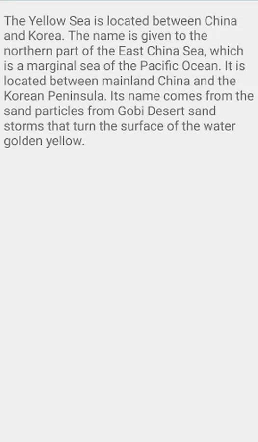 The Yellow Sea is located between China and Korea. The name is given to the northern part of the East China Sea, which is a marginal sea of the Pacific Ocean. It is located between mainland China and the Korean Peninsula. Its name comes from the sand particles from Gobi Desert sand storms that turn the surface of the water golden yellow.