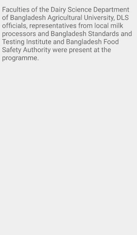 Faculties of the Dairy Science Department of Bangladesh Agricultural University, DLS officials, representatives from local milk processors and Bangladesh Standards and Testing Institute and Bangladesh Food Safety Authority were present at the programme.