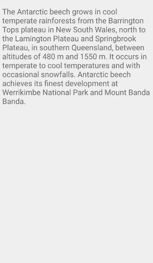 The vegetation found here is the most ancient in Australia with plant forms showing little change over the eons of time from their fossilized ancestors and it is here one can see magnificent Antarctic Beech trees of Gondwanaland.
