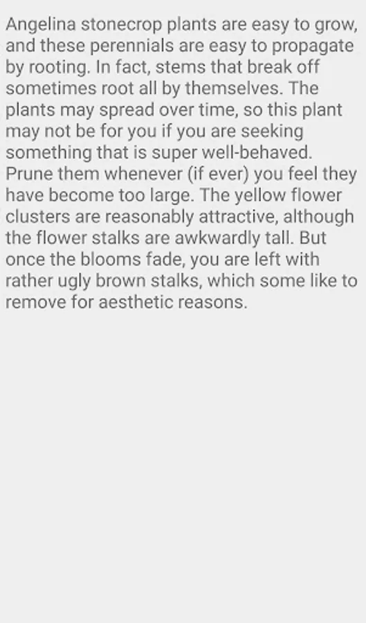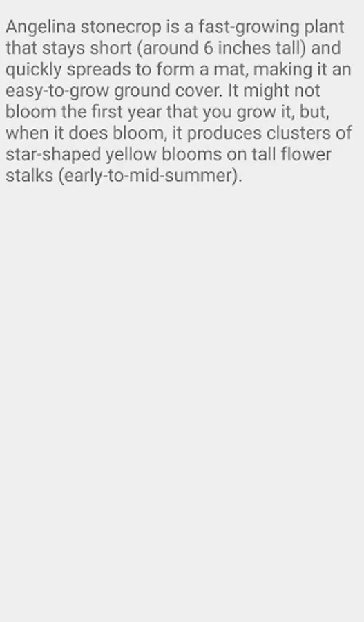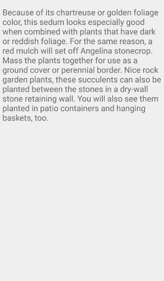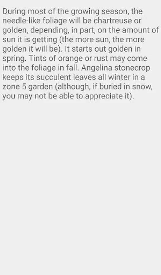 This vigorous, mat-forming, evergreen species has electric golden-yellow foliage that holds its color through the heat of summer. The foliage tips sometimes develop an orangey hue. In early summer, ‘Angelina’ has terminal clusters of star-shaped, vibrant yellow flowers. The drooping buds face upward when they open and the plant can grow to 6 inches tall and 12 inches wide. It is superlative as a groundcover, spilling over rock walls, and in containers. It also makes an excellent accent for plants with dark foliage.