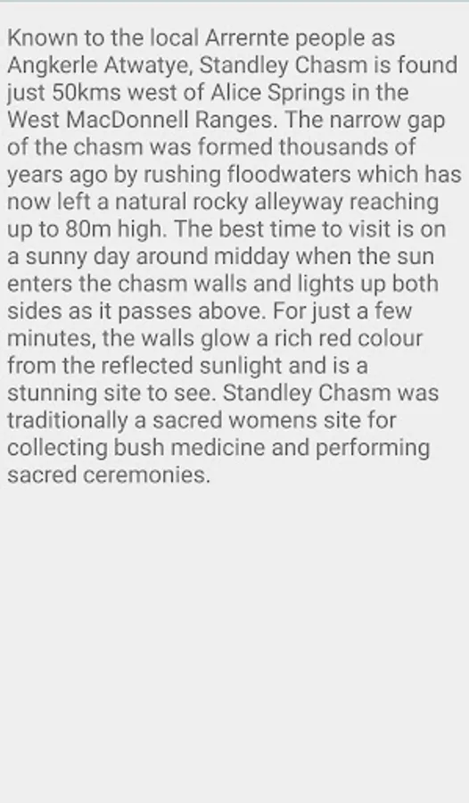Uluru is one of Australia's most recognisable natural landmarks. The sandstone formation stands 348 m (1,142 ft) high, rising 863 m (2,831 ft) above sea level with most of its bulk lying underground, and has a total circumference of 9.4 km (5.8 mi).[5] Both Uluru and the nearby Kata Tjuta formation have great cultural significance for the Aṉangu people, the traditional inhabitants of the area, who lead walking tours to inform visitors about the local flora and fauna, bush food and the Aboriginal dreamtime stories of the area.