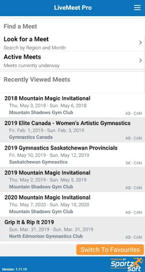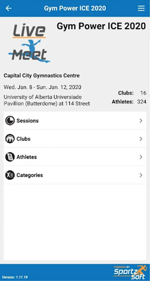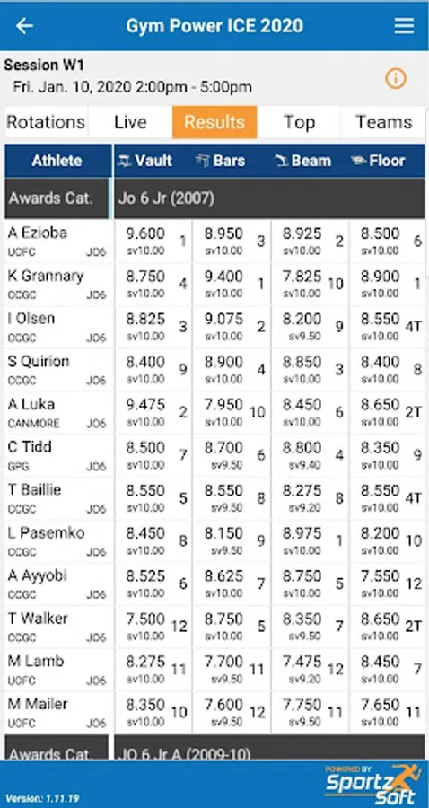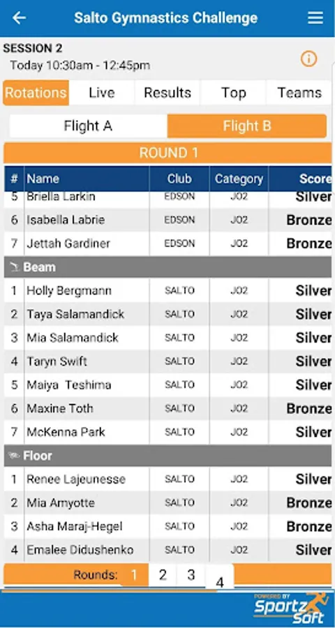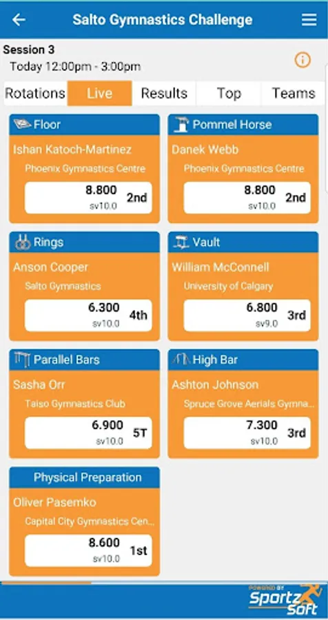 Sessions have 5 different views available (Rotations, Live Scores, Results, Top Scores and Team Scores)
