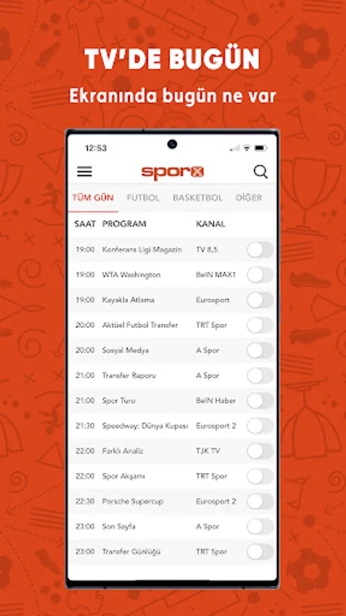- As a Sporx classic, easy access to the events that will take place on all television channels and reminder notification for the program you want