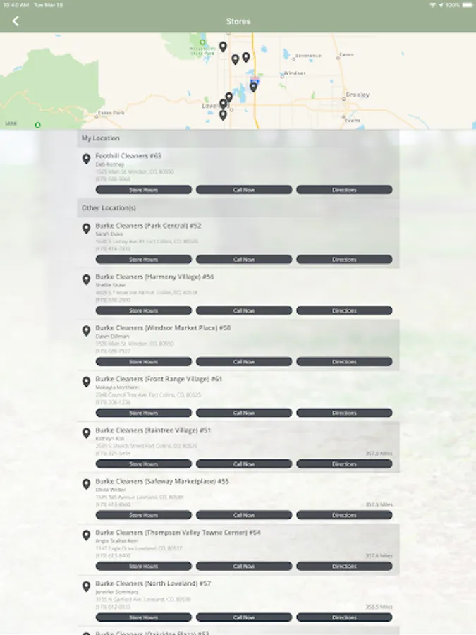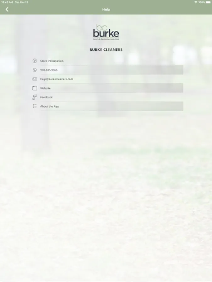 5) Quickly contact Burke Cleaners by phone or email and access their website all directly from your device.
