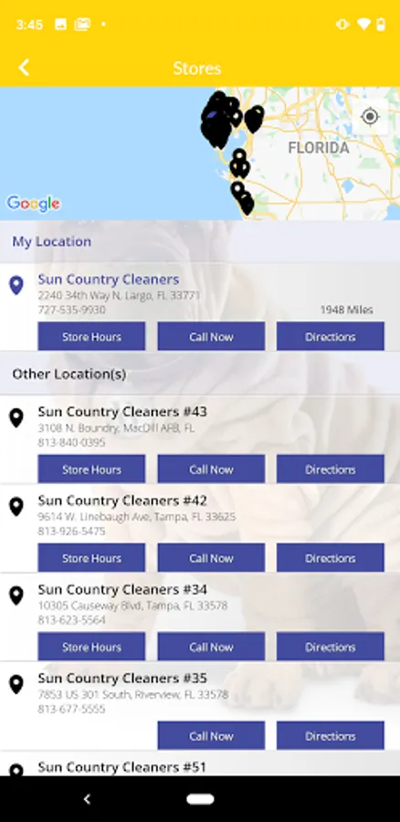 5) Quickly contact Sun Country Cleaners by phone or email and access their website all directly from your device.