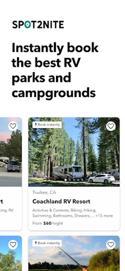Spot2Nite is an innovative marketplace built by avid RVers that allows RV travelers to discover and book the best RV sites in real-time. Its open architecture integration with robust park management systems combines state-of-the-art technology and real-time asset visibility to provide immediate booking of available campground spots to the traveler. Through the Spot2Nite marketplace, end users can book in real-time, avoiding the hassle of antiquated reservation methods. The Spot2Nite platform drives new campers to campgrounds, increasing reservations and creating loyal travelers through a convenient reservation process.