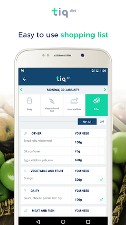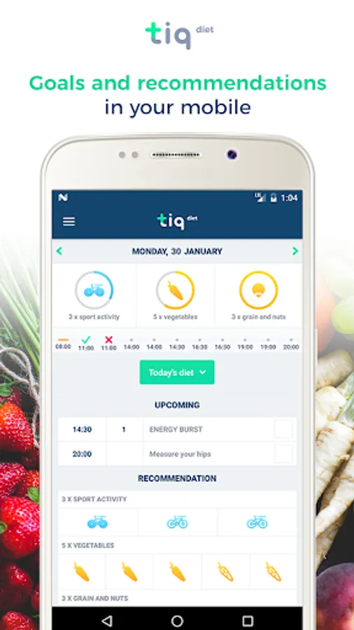 We provide you with an application that will give you constant access to a nutrition plan designed to your needs by a health specialist. Don't have your own specialist? No problem! From now on, when you register with TiqDiet you can use the demo diet and then find your specialist with our help.