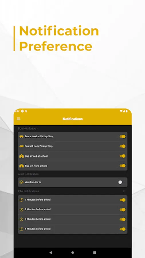Parents are in total control tracking the school bus when it’s about to arrive and are informed via various types of notifications as set by them.