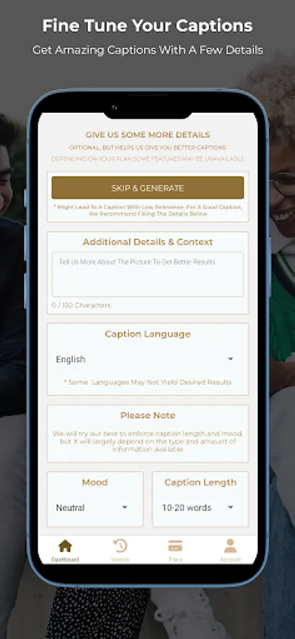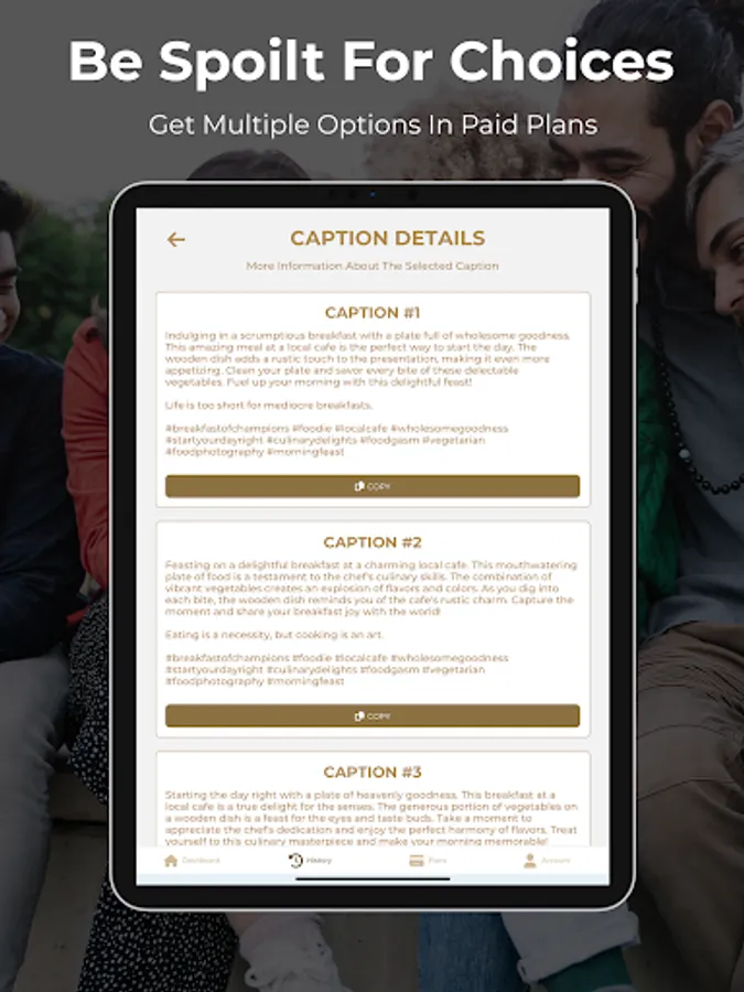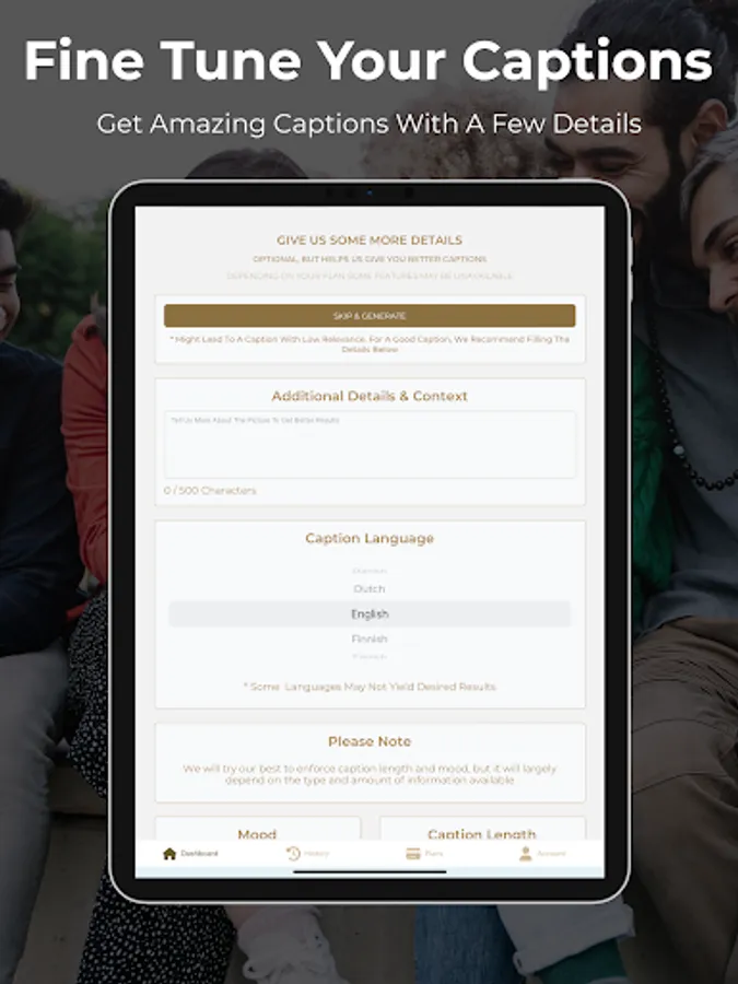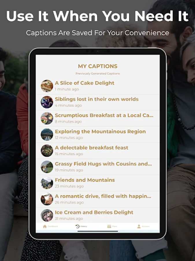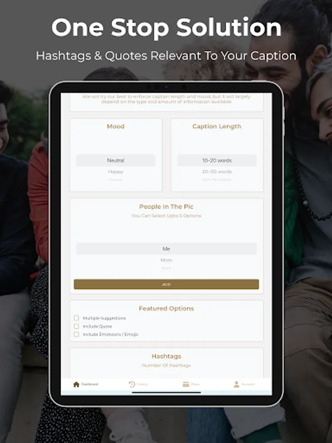 Say goodbye to the days of struggling to come up with the right words for your social media posts. The AI captions app takes the hassle out of creating social captions by utilizing advanced artificial intelligence algorithms to generate personalized and engaging caption for photos. The caption tool app is designed to understand your images and craft compelling captions to make them stand out. It's no more about pondering over the right words; let our advanced AI do the job!
