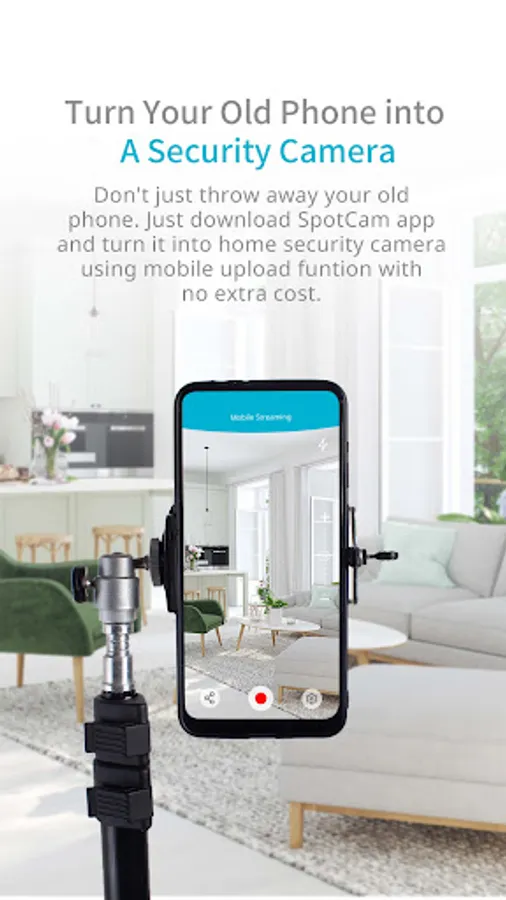 Don't throw away that old phone just yet. Download SpotCam App and enable the mobile video upload function, convert your old phone into a security camera in just 3 minutes.