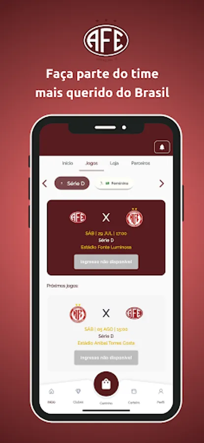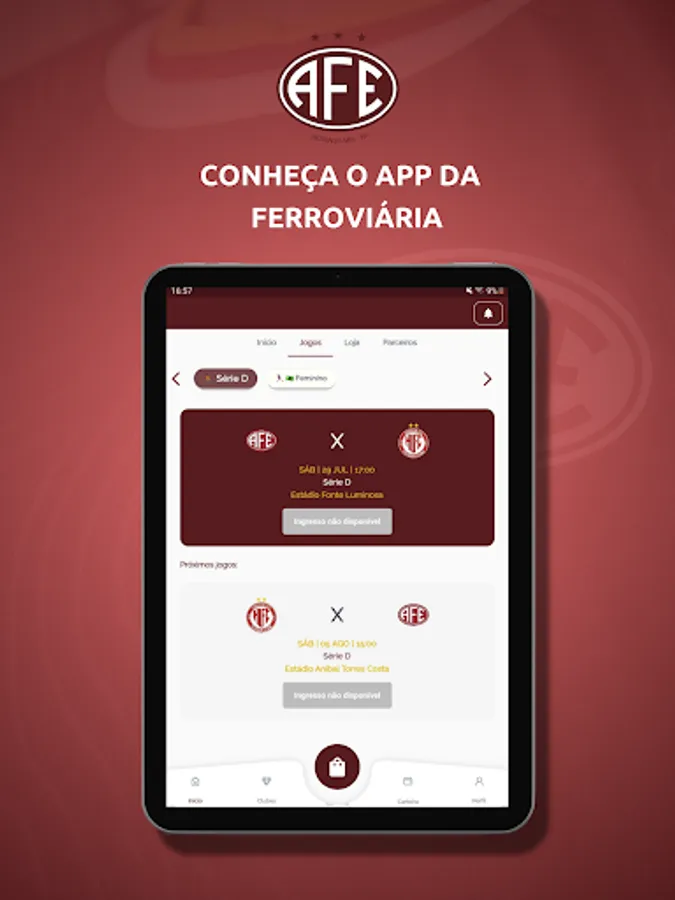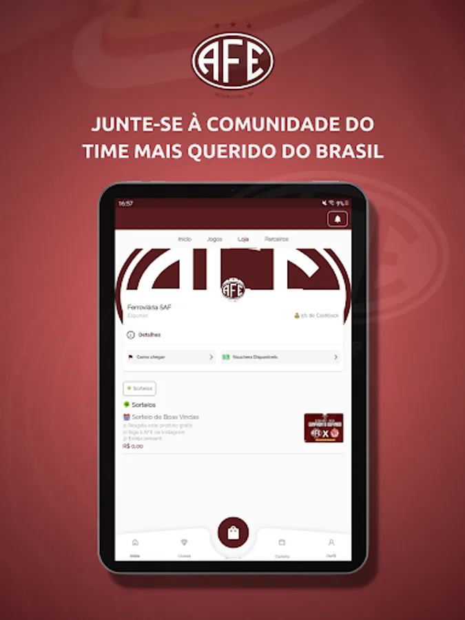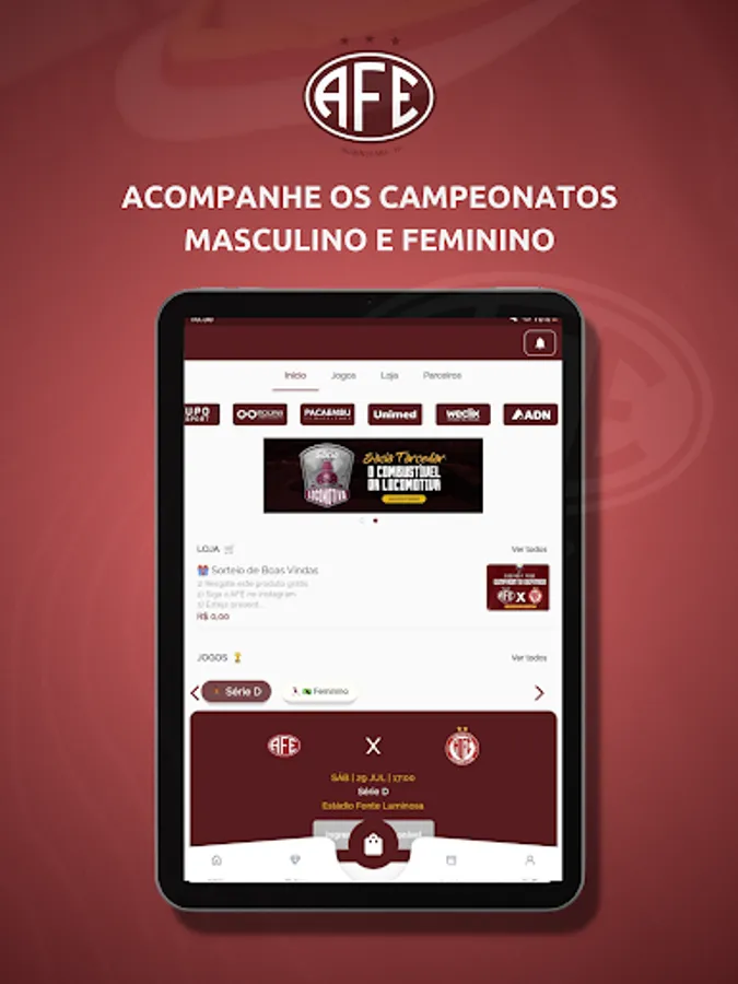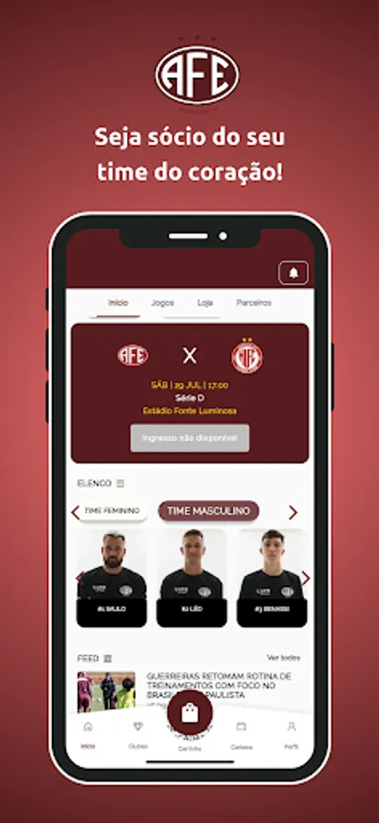 In the Ferroviária APP, you can follow the team's news, guarantee official products and tickets for the games, in addition to becoming a fan member, gaining access to a network of benefits and exclusive promotions.