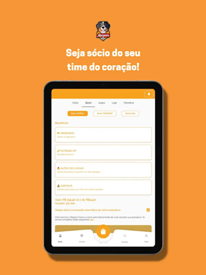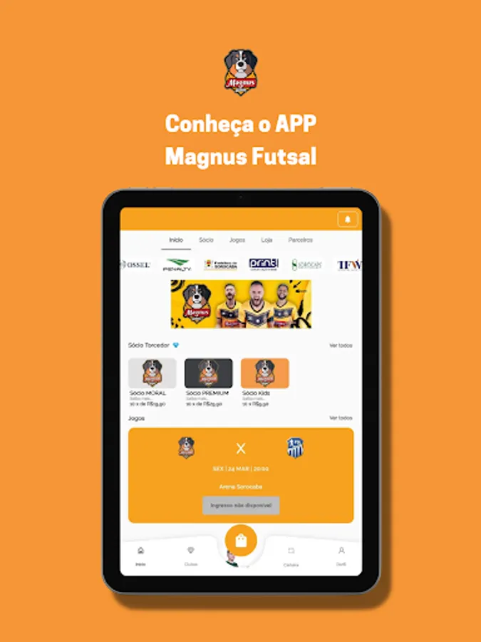 In the Magnus Futsal APP, you can follow the team's news, guarantee official products and tickets for the games, in addition to becoming a fan member, gaining access to a network of benefits and exclusive promotions.