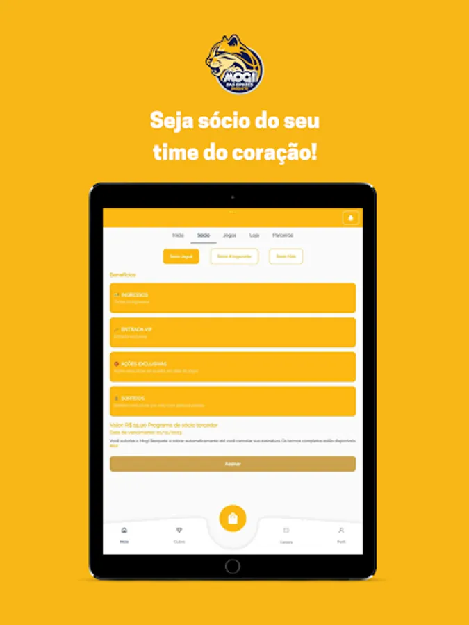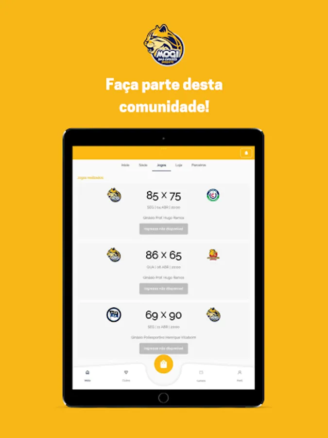 In the Mogi Basketball APP, you can follow the club's news, guarantee official products and tickets for the games, in addition to becoming a fan member, gaining access to a network of benefits and exclusive promotions.