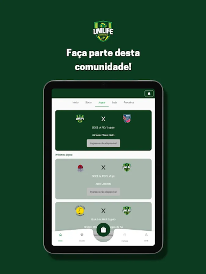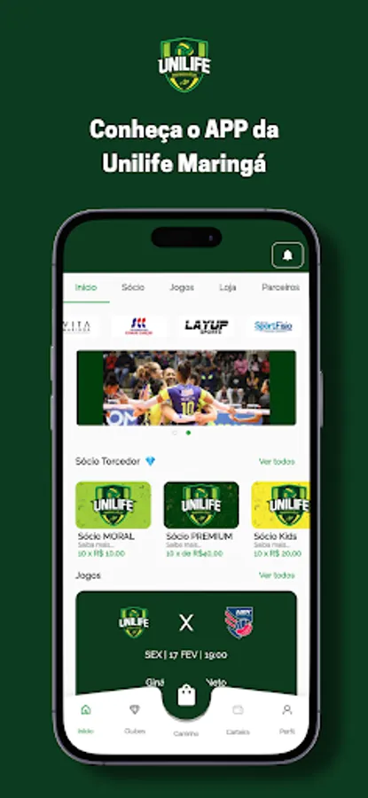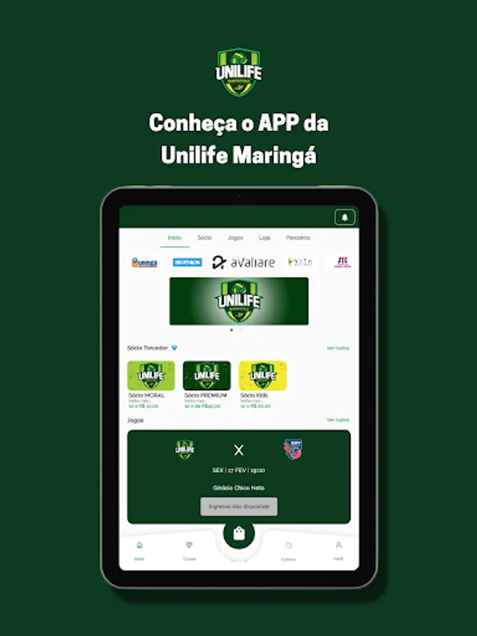 In the Unilife Maringá APP, you can follow the team's news, guarantee official products and tickets for the games, in addition to becoming a fan member, gaining access to a network of benefits and exclusive promotions.