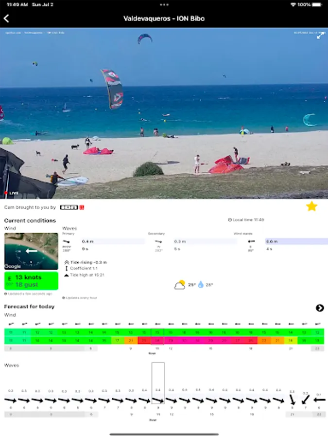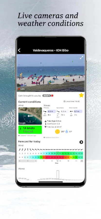Always keep an eye on your favourite spots thanks to our HD live cameras. Plan ahead your next session, either if you intend to go in the next hour or on the weekend, by checking the current weather conditions and 10 day wind, wave and tide forecasts for your spot.
