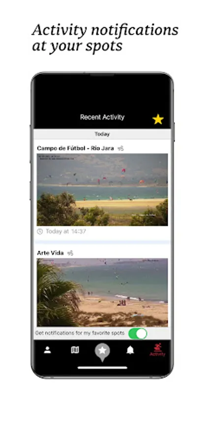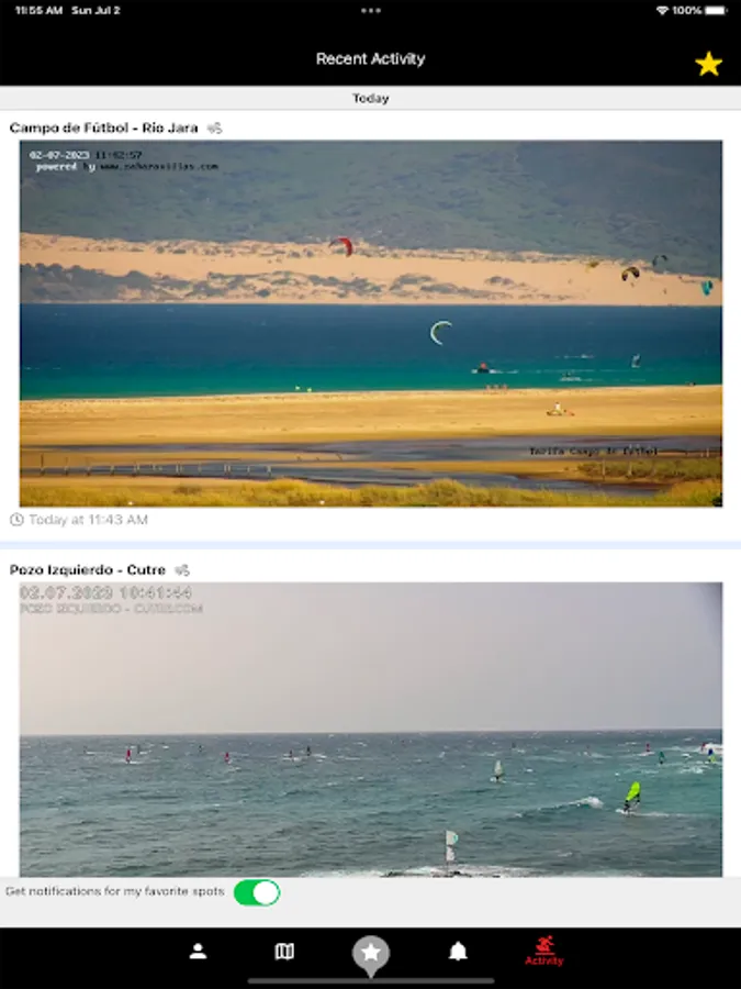- AI-powered activity reports: stay tuned when there is watersports activity at your spots and get notified about it.