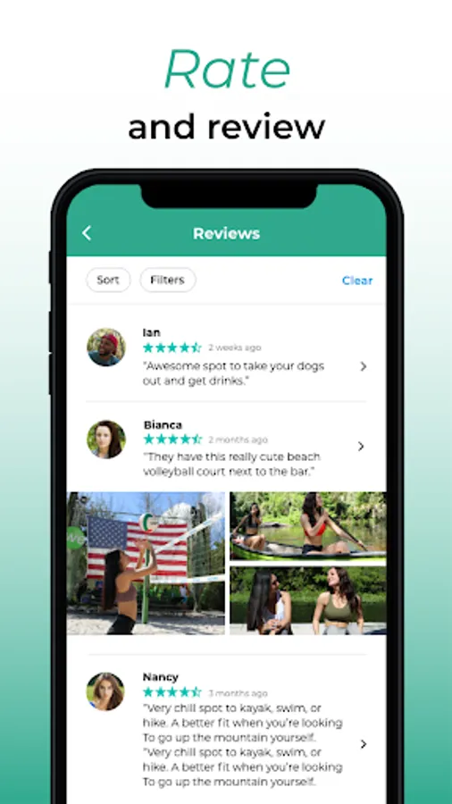 - Leave reviews and photos