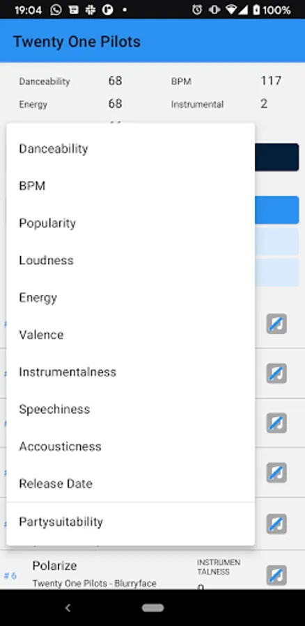 Instrumentalness: A measure from 0 to 100, with values above 50 representing instrumental tracks.