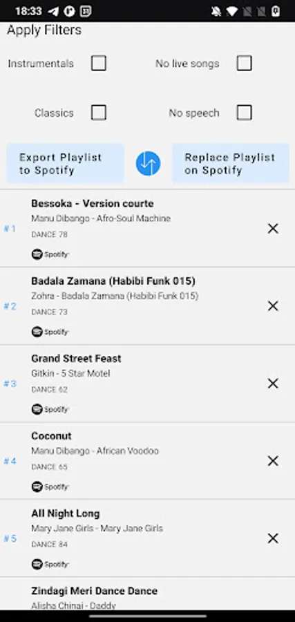 With Sortify, you can easily reorganize your playlists by various criteria, including danceability, tempo, valence, and more. You can also enable or disable tracks manually and save your reordered playlists directly to Spotify. Plus, with our ad-free platform, you can focus solely on finding the perfect tunes.