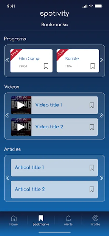 Alerts & Notifications Internal Alerts and Notification are easy to navigate so that you never miss an important message from connected Programs, your Parents / Guardians, or from the mothership at spotivity HQ.