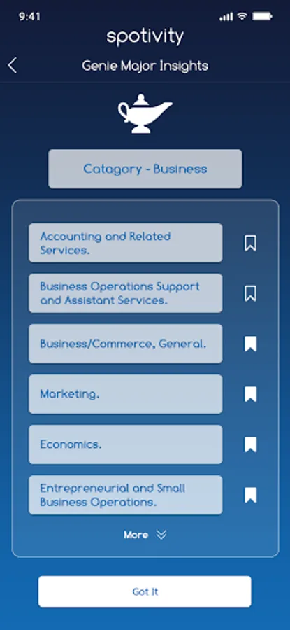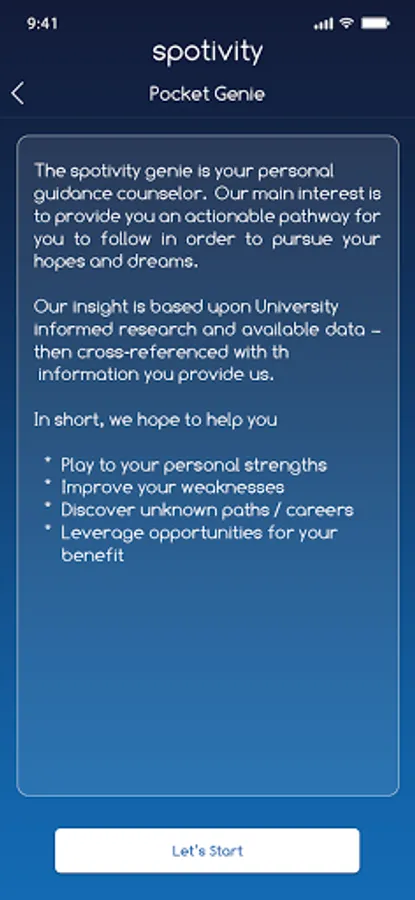 spotivity’s research-informed tool to help teens make decisions that are more informed. The Genie currently provides insights into activities and college major alignment and will evolve and become even more useful over time.