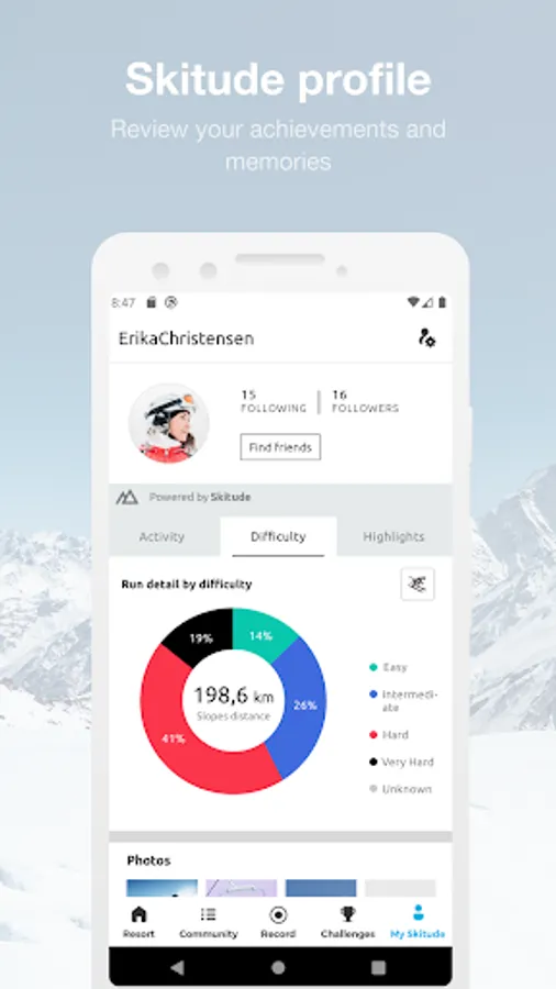 The App offers a range of features designed to optimize your experience before, during and after your trip. It’s very simple, plan your getaway and get real time updates on slope conditions. Set up your Skitude profile and track your activities on the slopes to get detailed stats about all your activities. And that’s not all, take part in challenges to be in with a chance of winning incredible prizes.