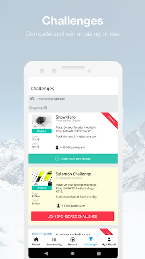 Set up your Skitude profile to track your activities using the GPS tracker. Find out where you are in the season's rankings and try to complete the challenges to be in with a chance of winning great prizes.